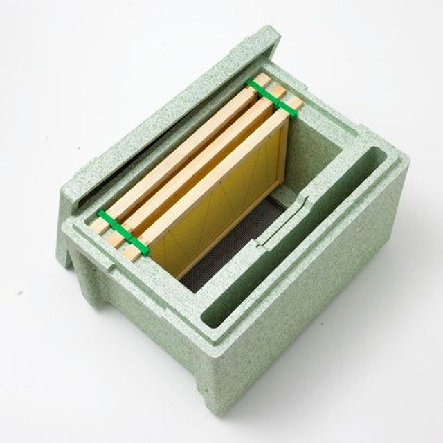 A 6 frame poly nuc, takes frames suitable for national hives, either DN4 or DN1 frames (not included) and comes complete with side feeder.