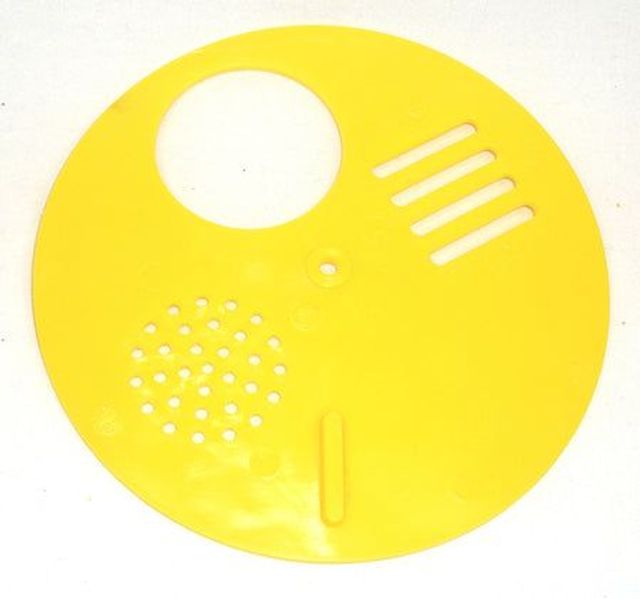 Poly Nuc entry disc with 4 separate settings: closed, breather perforations, open and queen excluder slots- ideal for new colonies.